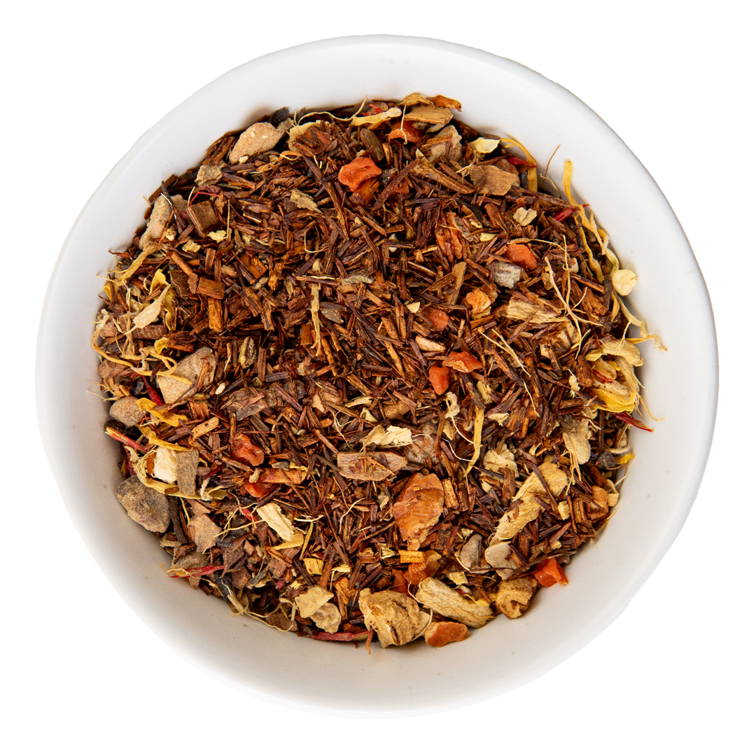 Who doesn’t love a big piece of carrot cake? We created this cozy rooibos blend in the spirit of our fave fall treat, with real carrot and classic warming spices. So sip away and have that extra cup, no need to count calories here!
