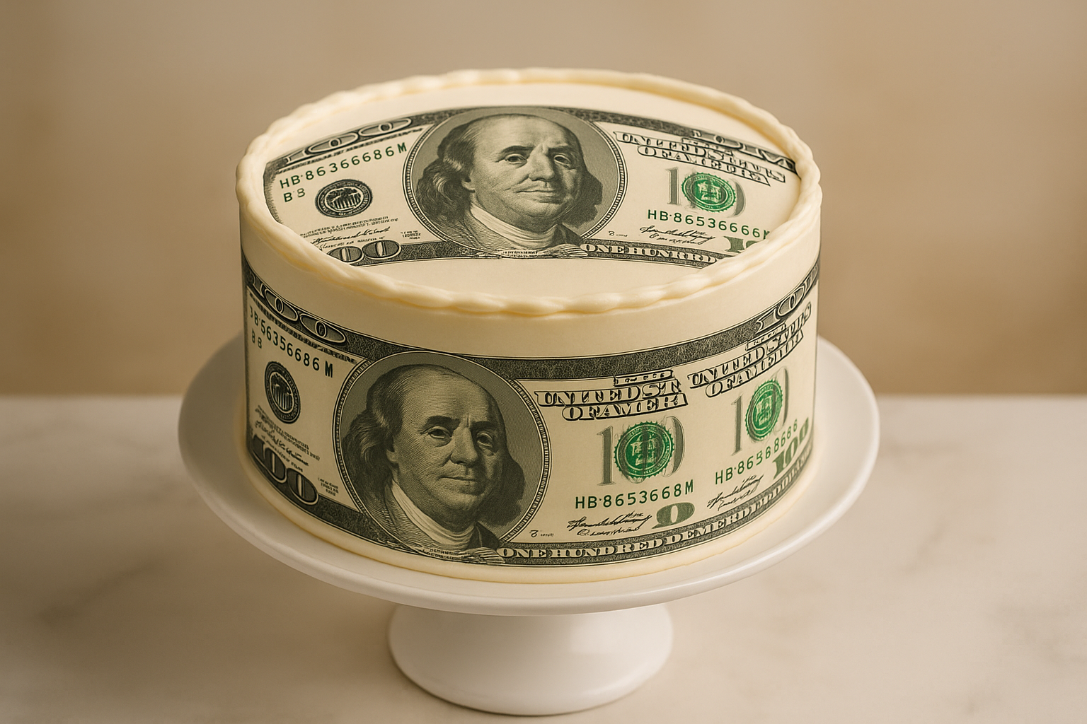 Edible $100 USD bill cake toppers are the perfect finishing touch for cakes and desserts. These toppers are made from high-quality, food-safe material to provide a realistic and edible representation of US currency. Add a unique touch to your celebrations with Edible $100 USD bill cake toppers.