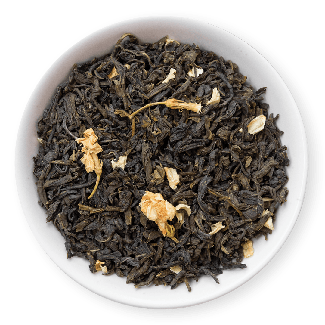 A lush bed of premium green tea, delicately scented with aromatic jasmine flowers. A classic tea enjoyed all over the world.