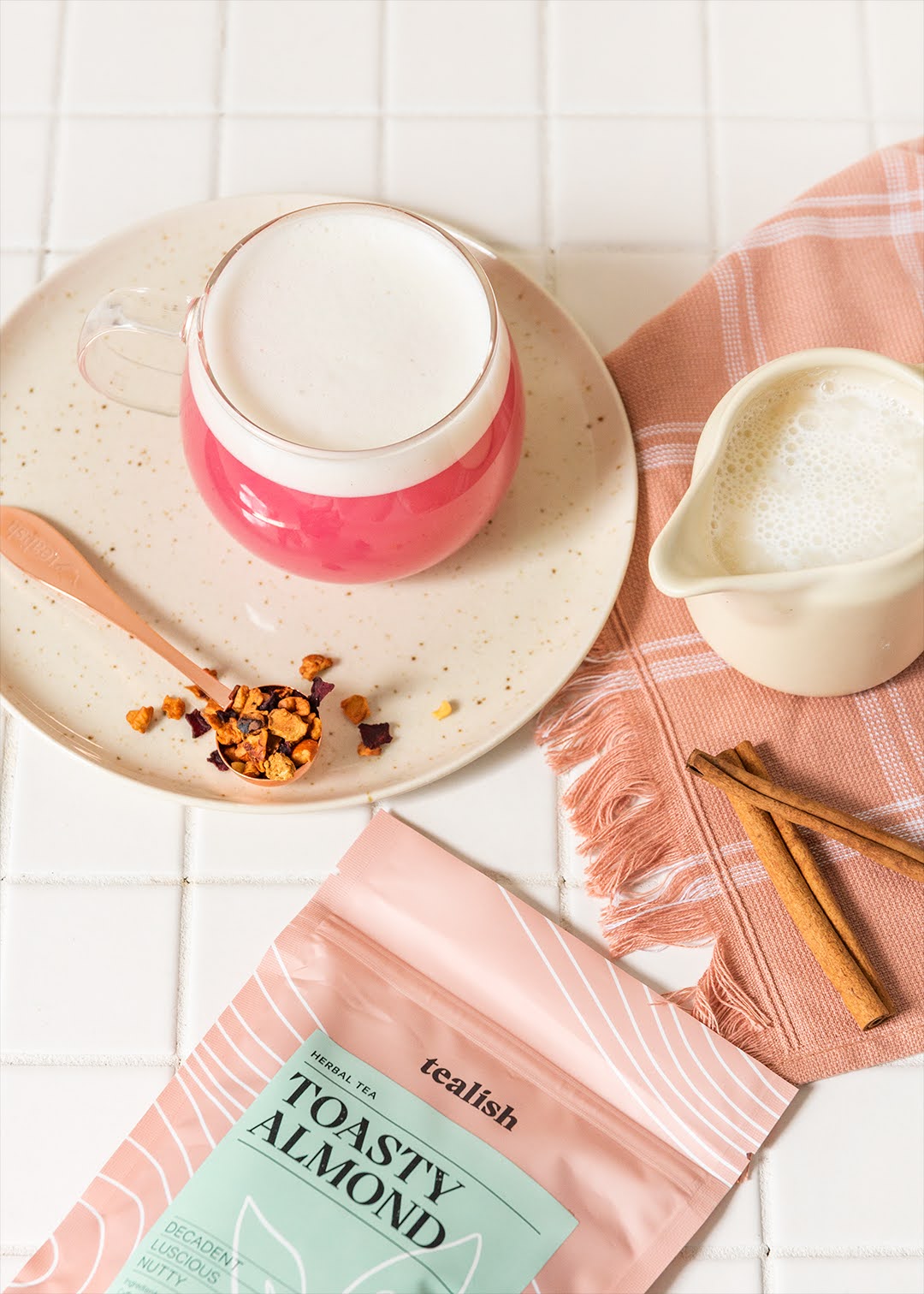 A rich and delicious herbal tea blend with toasted almond, apple, cinnamon, and beetroot pieces (it brews pink!). The intoxicating aroma of roasted nuts, caramelized almonds and baked apples are impossible to resist.